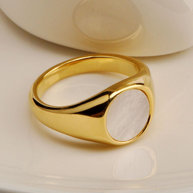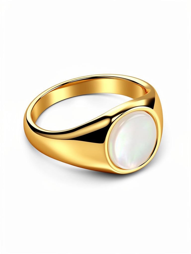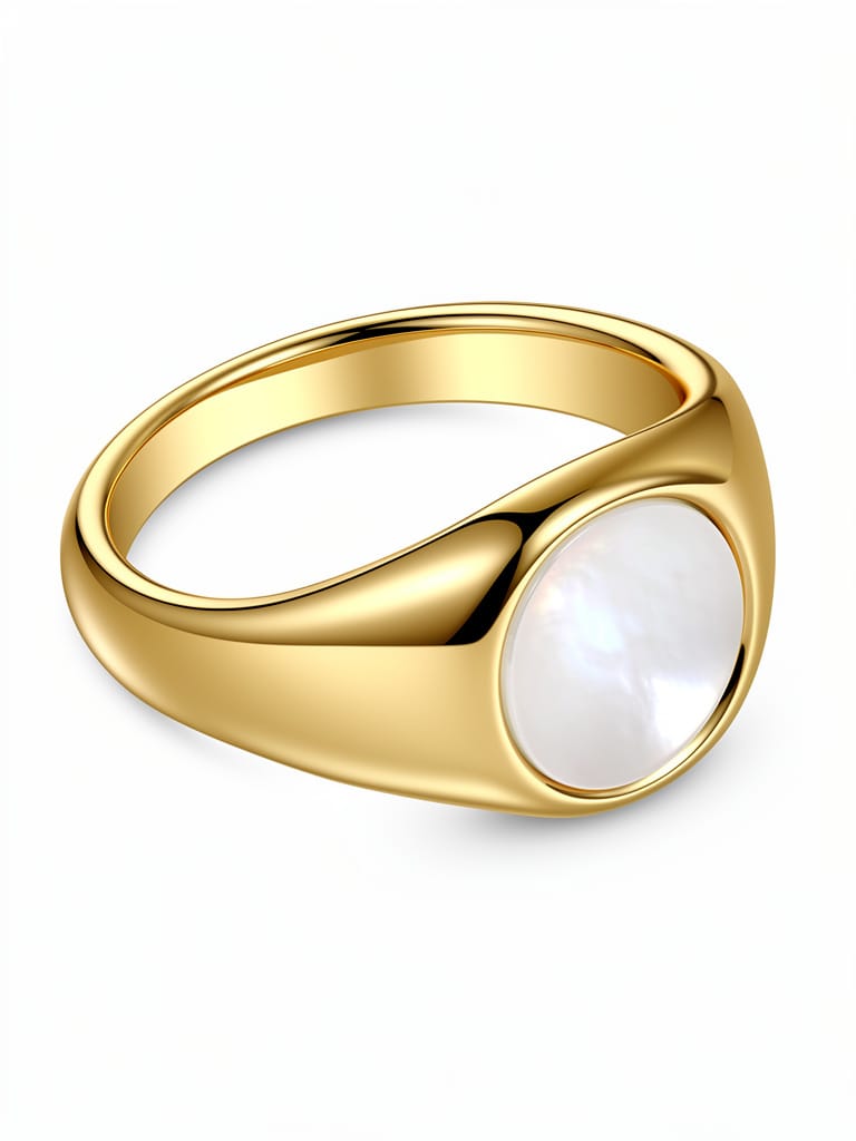 Anel Selo Dourado Madrepérola Liso