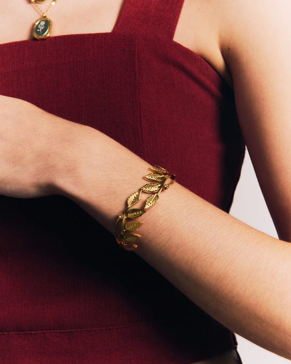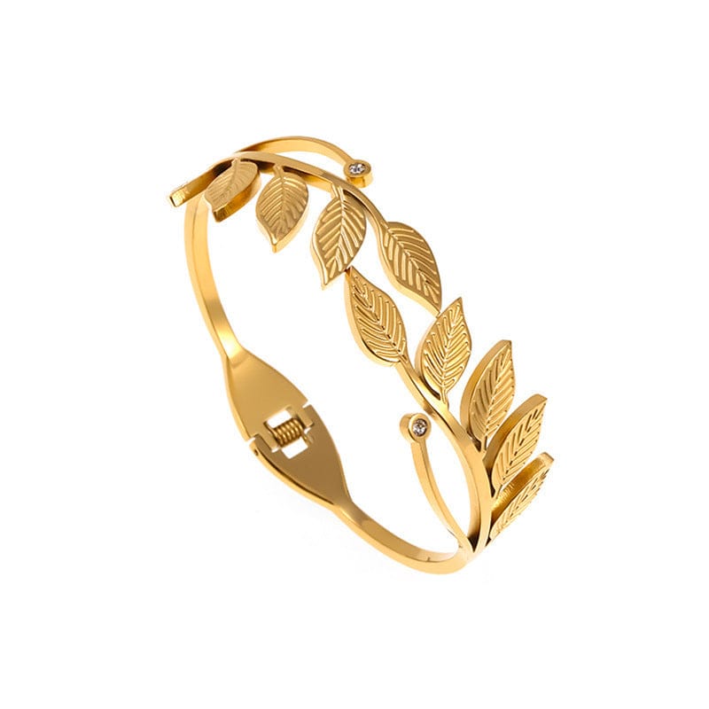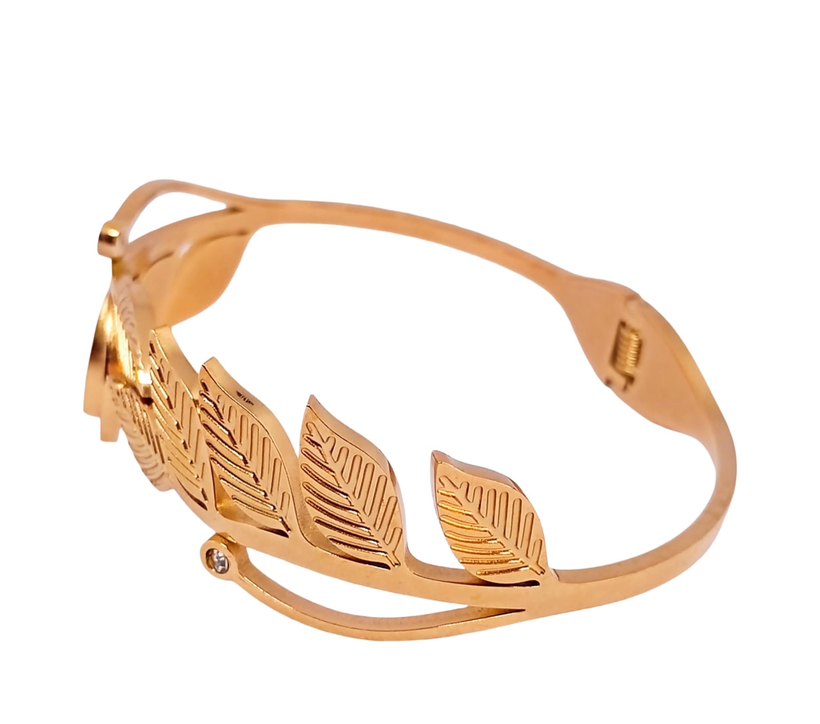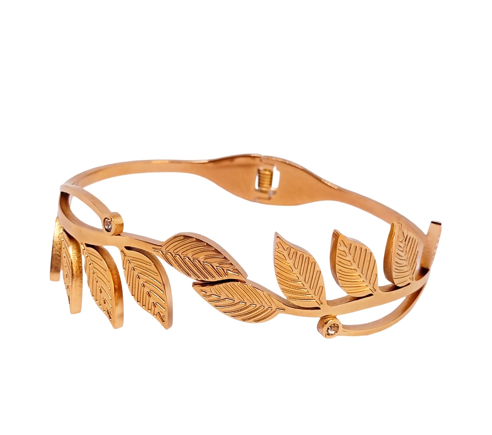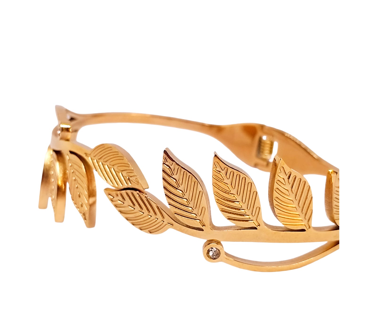 Bracelete Folha de louro com detalhes texturizados com pequenos adornos de zircônia banho de ouro