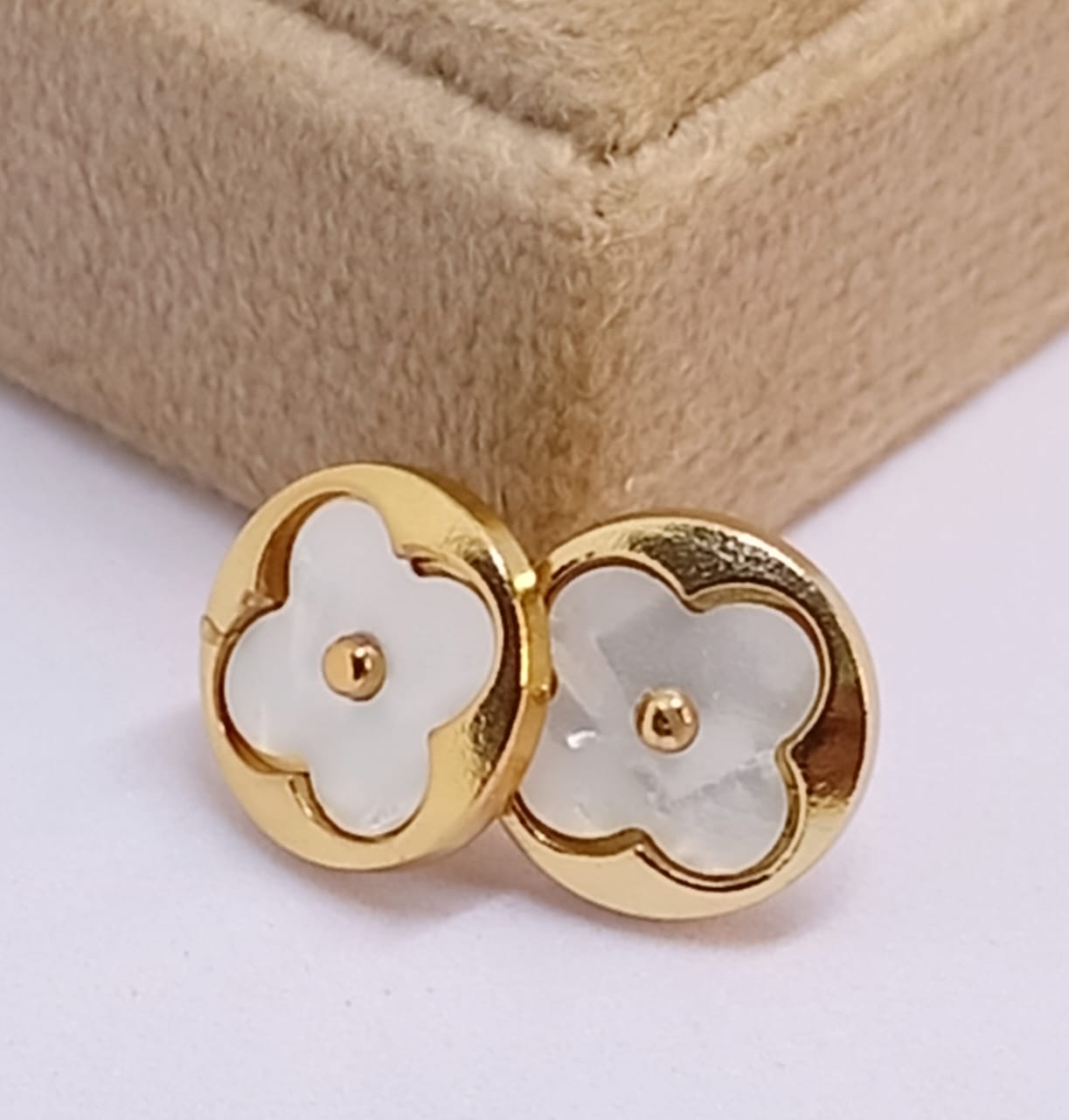 Brinco dourado madrepérola flor